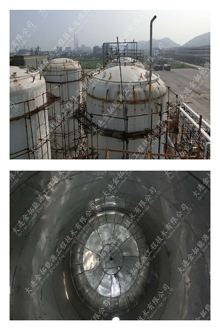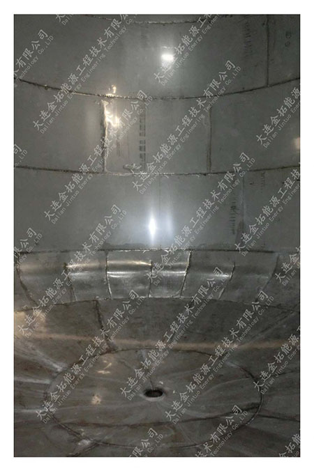 为大型储罐增加防腐隔离内衬,解决物料对筒体的腐蚀、保证物料的洁净度。