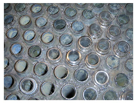 汽提塔换热管管头与降膜管密封部位的缝隙腐蚀现象也十分严重,使管端减薄成刀状或穿孔,影响降膜效果,可以根据需要进行管端更换,并进行加工,达到工艺技术尺寸要求。