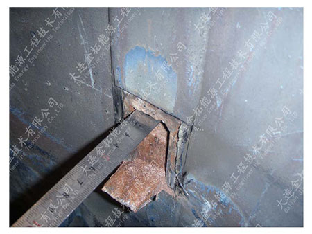 设备经长时间运行,尿素生产过程中解析出的物质对衬里产生强烈腐蚀,致使尿素合成塔衬里逐步减薄,最终无法满足正常生产使用要求,需要对衬里进行更换,使设备恢复原有的技术要求,达到设备正常运行和安全使用的目的,从而减少停车时间和延长设备使用寿命,节约设备更换成本。